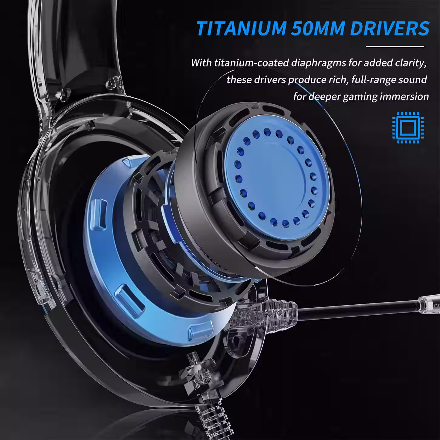 - Titanium 50mm Drivers: Titanium 50mm Drivers for enhanced sound clarity and immersive gaming experience.